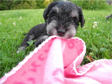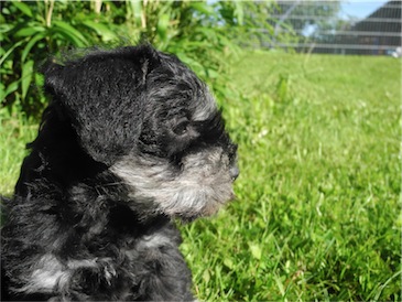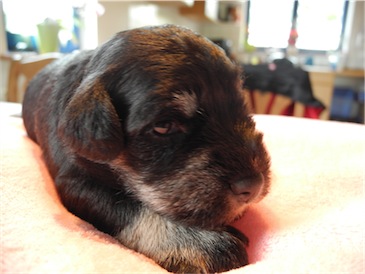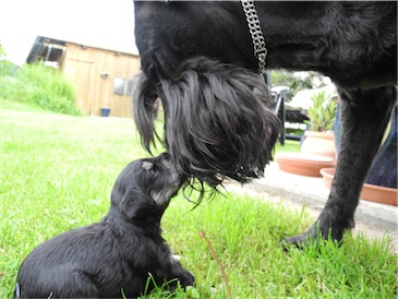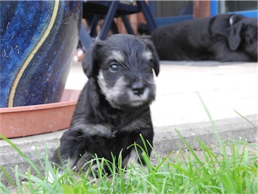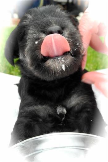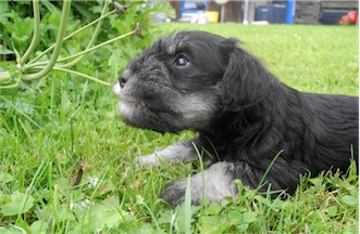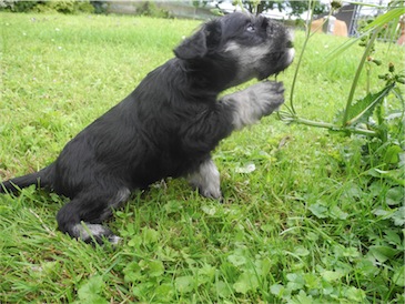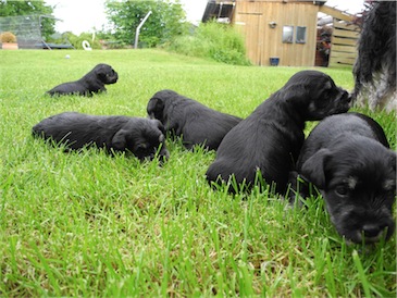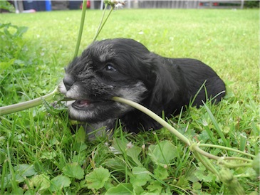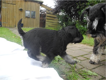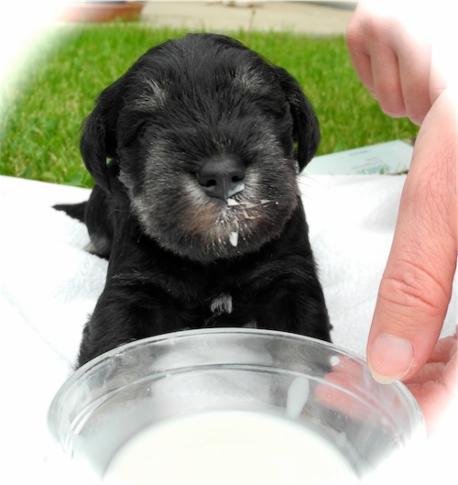 Der erste Ausflug in den Garten und wir probierten schon mal ein wenig Welpenmilch vom Frauchen " Lecker ". Wir haben den Rüden Calimero getauft, wir hoffen den neuen Besitzern gefällt dieser Name