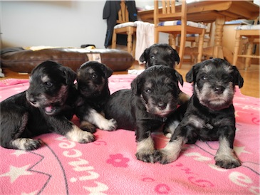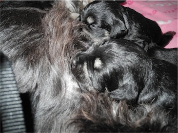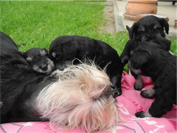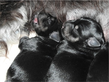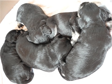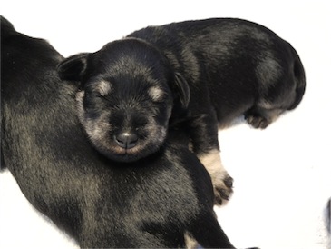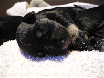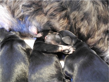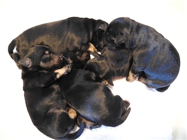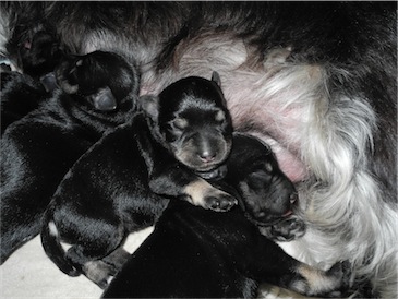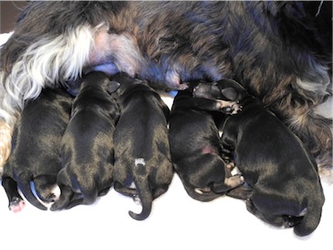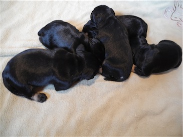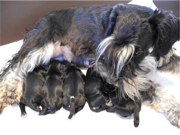 Anna-Lena hat uns 1 Rüden und 4 Hündinnen geschenkt, Mutter und Babys sind wohl auf.