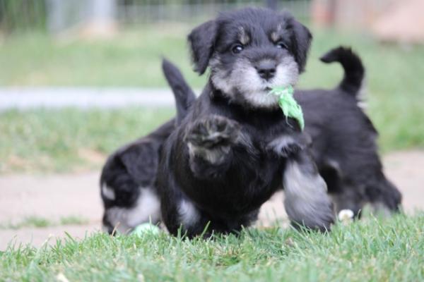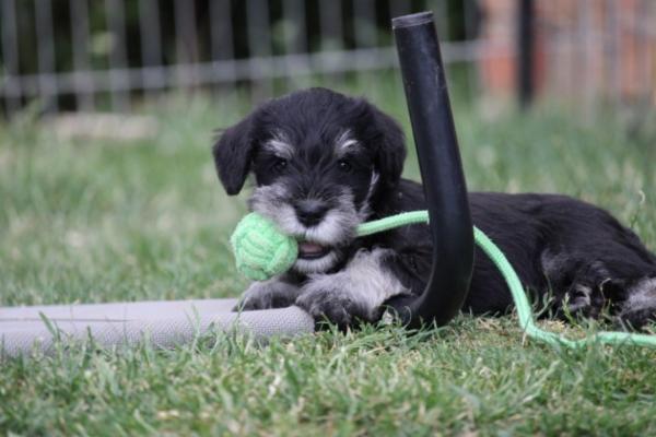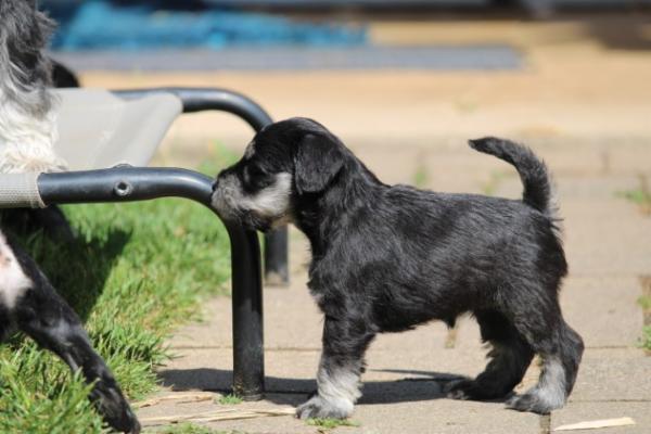 Heute sind wir fünf Wochen alt und sind super drauf, bei dem schönen Wetter sind wir viel draußen und können uns austoben